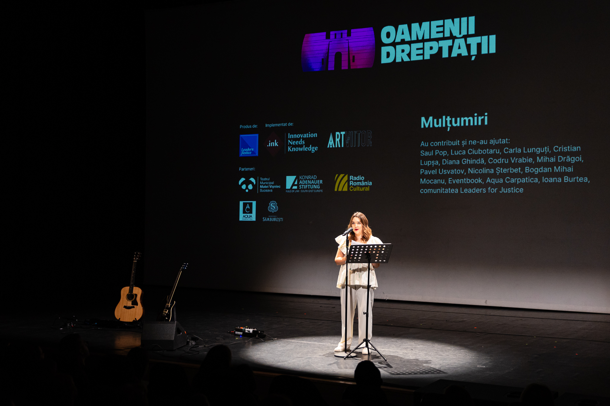 Oamenii Dreptății Suceava a însemnat 13 povești spuse de profesioniști din justiție, jurnaliști, oameni din ONG, un antreprenor local, studenți, profesioniști în community și social media și un pompier, o piesă de teatru, un film scurt și un recital, toate puse pe scenă autentic și cu inima deschisă. A mai însemnat 300 de suflete în sală, care au râs, au plâns și au făcut cunoștință cu… puterea comunității.
