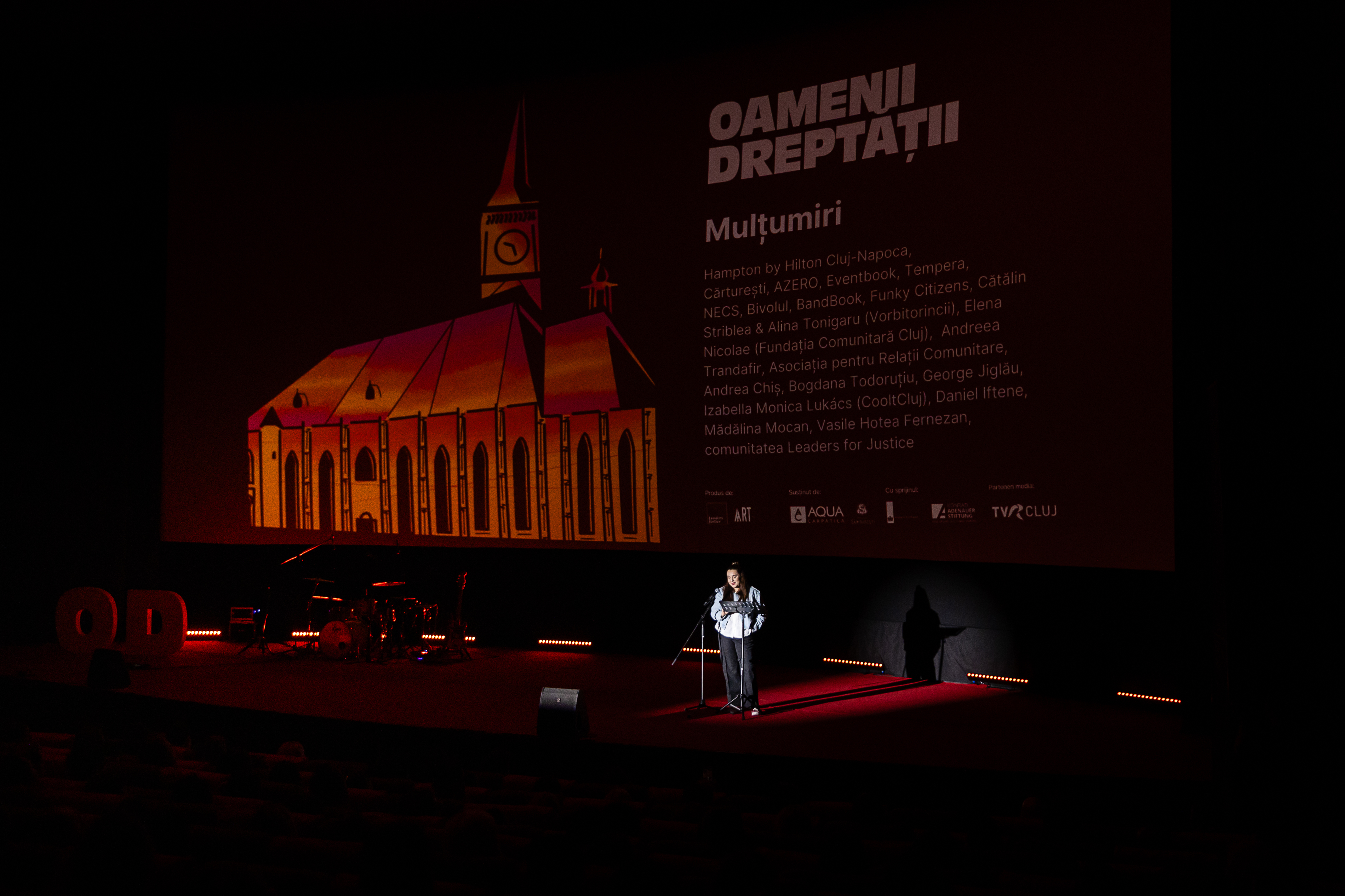Fundației Konrad Adenauer - Programul Statul de Drept Europa de Sud-Est, partenerilor Aqua Carpatica, librăriilor Cărturești unde găsiți de o lună raftul Oamenii Dreptății și pe care-i găsiți și la ieșire în foaier cu o selecție de cărți recomandate de oamenii care au stat cu inima p-afară pe scenă, partenerului media TVR Cluj și prietenului meu de-un deceniu jurnalistul Vasile Hotea Fernezan, tuturor celor care au pus umărul ca seara asta să se-ntâmple și vouă pentru că ați fost aici.